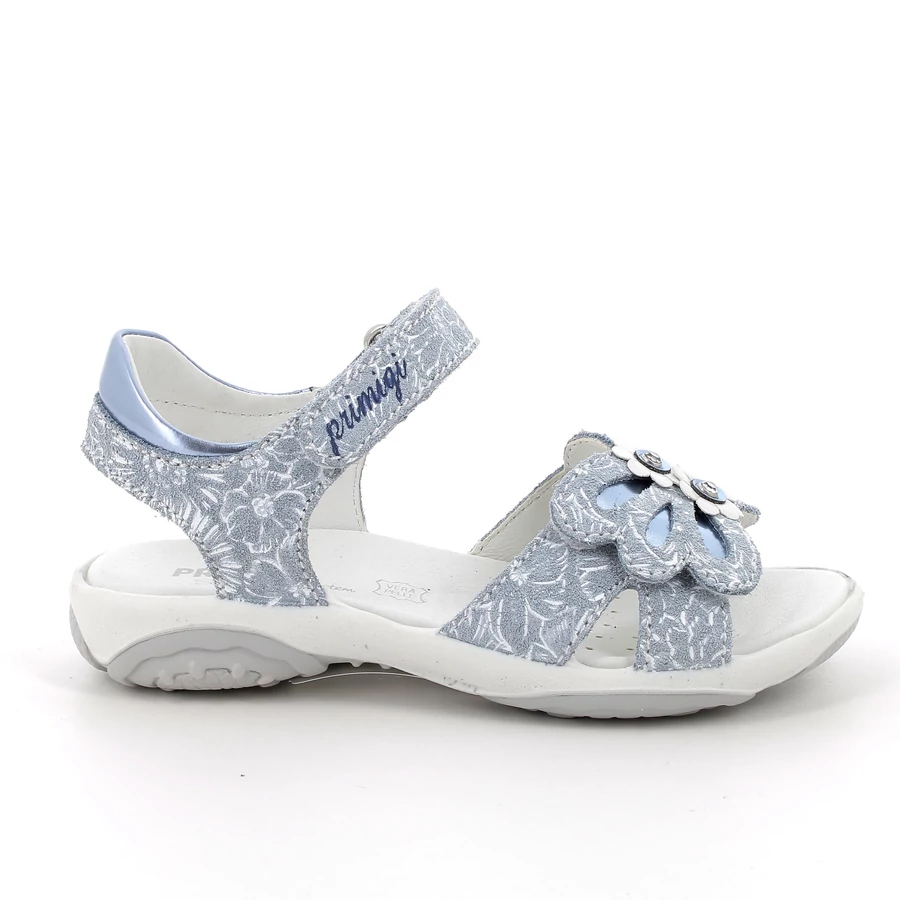 Lányka szandál, több alkalomra alkalmas. Az elülső sávon virág alakú applikáció található apró központi részletekkel, amelyek játékos és nőies megjelenést kölcsönöznek.